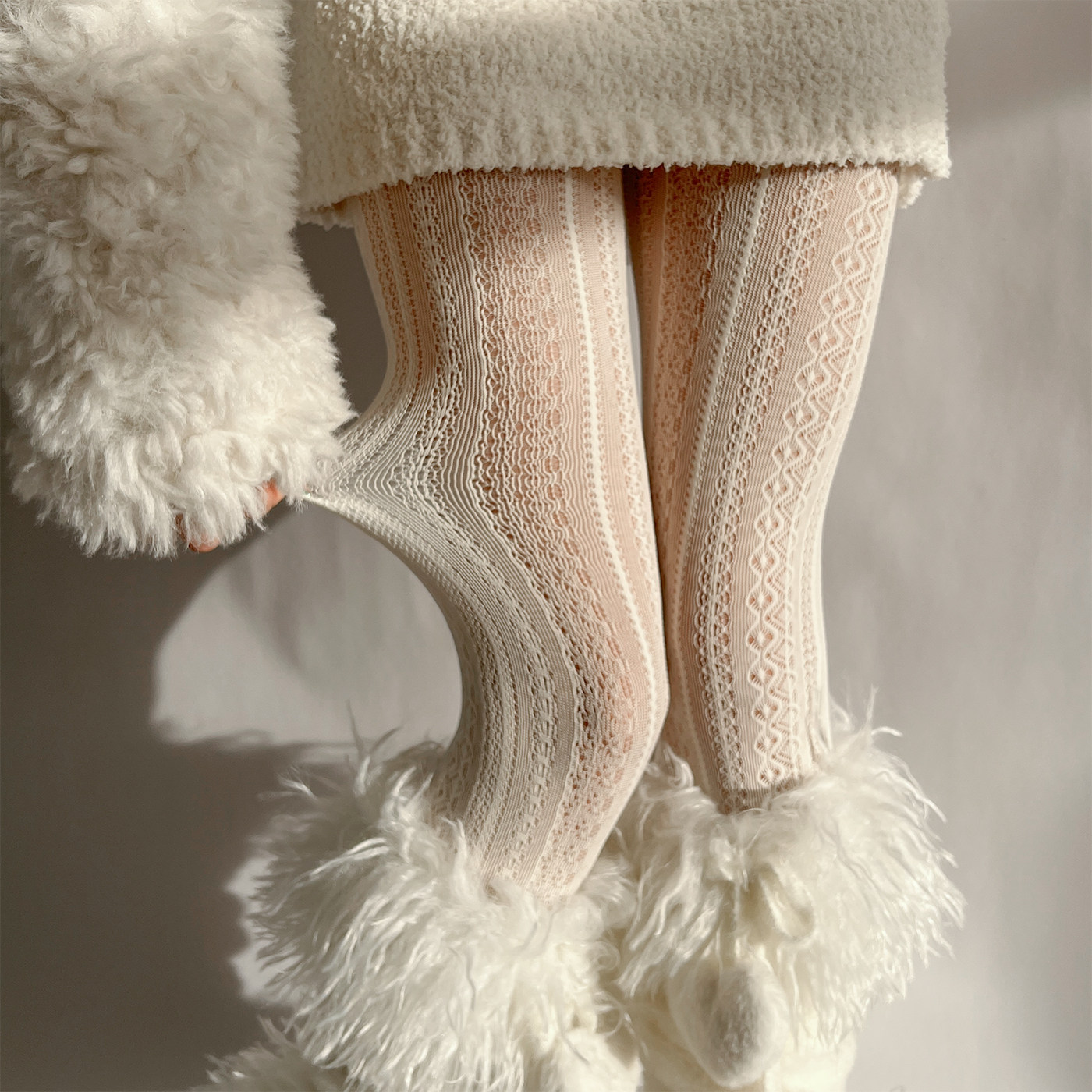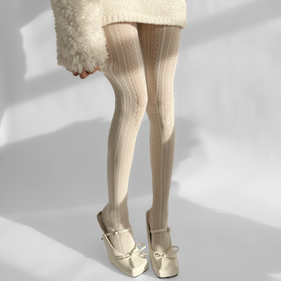 袜女 袜日系麻花纹JK米白丝袜加厚保暖打底裤 秋冬季 加绒奶白色连裤