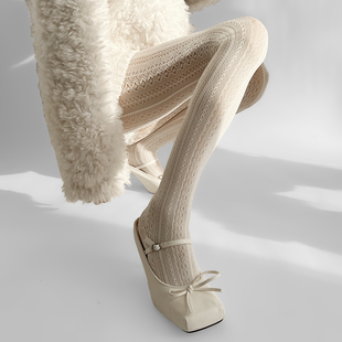 抵达一楼加绒加厚白色连裤 袜女外穿秋冬保暖百搭纯色Lolita打底裤
