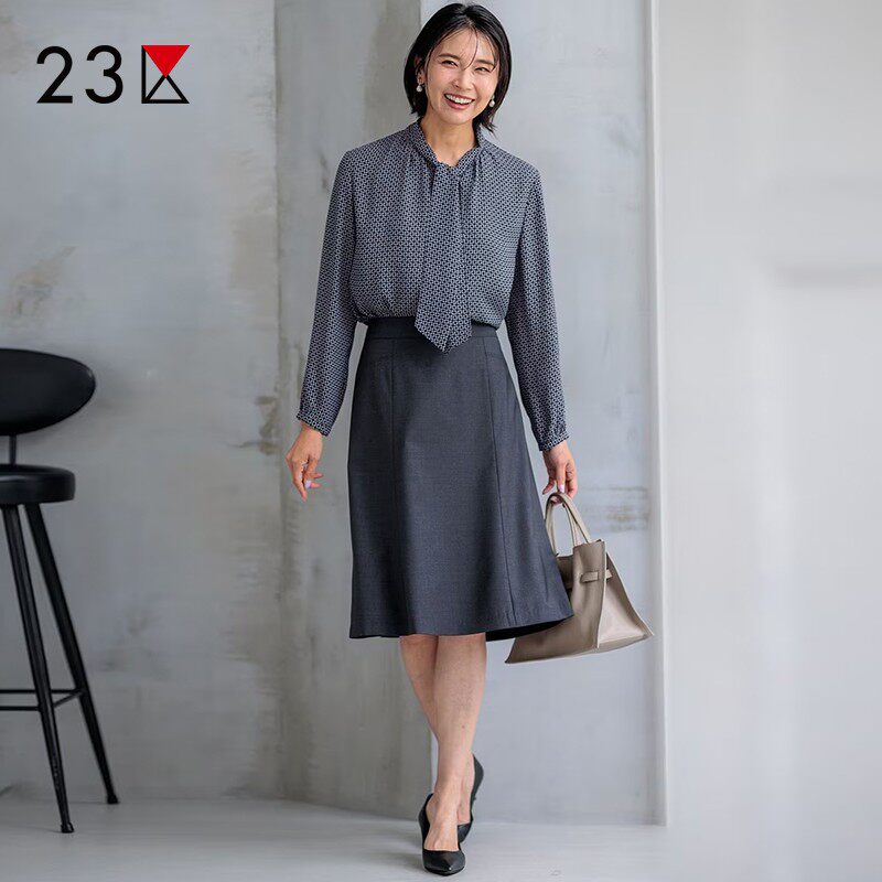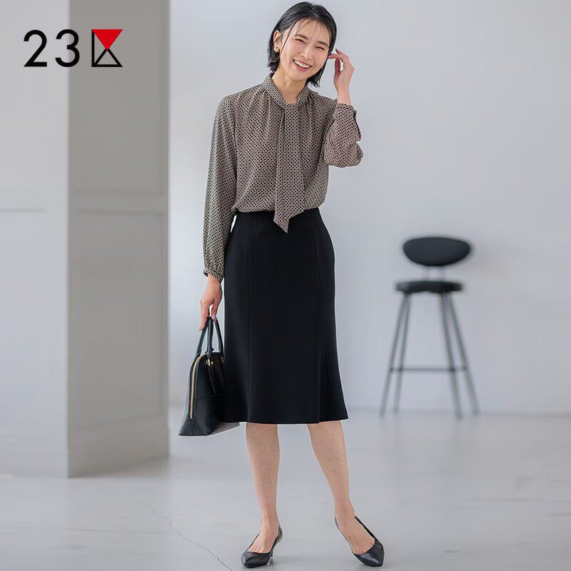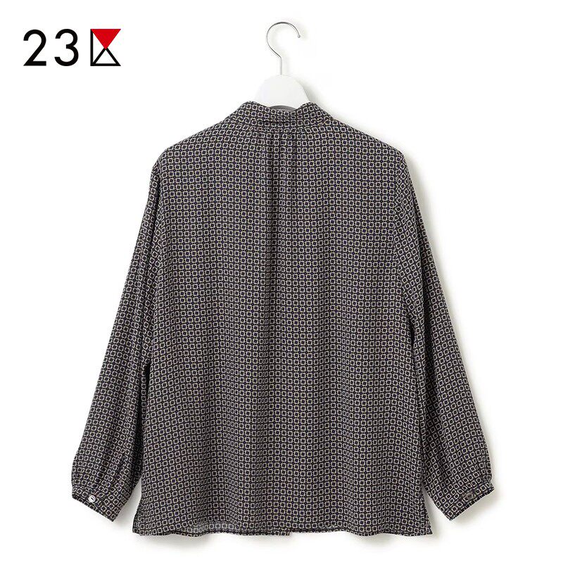 商场同款 23区日系春季 衬衣休闲衬衫 长袖 通勤职业OL宽松印花飘带款