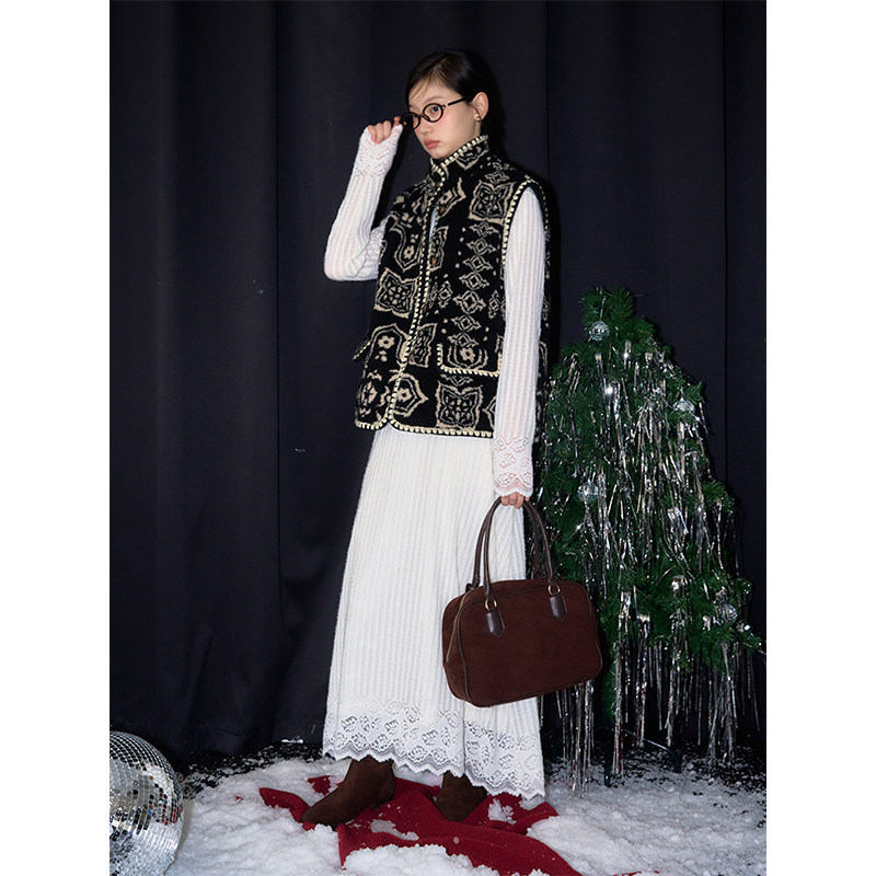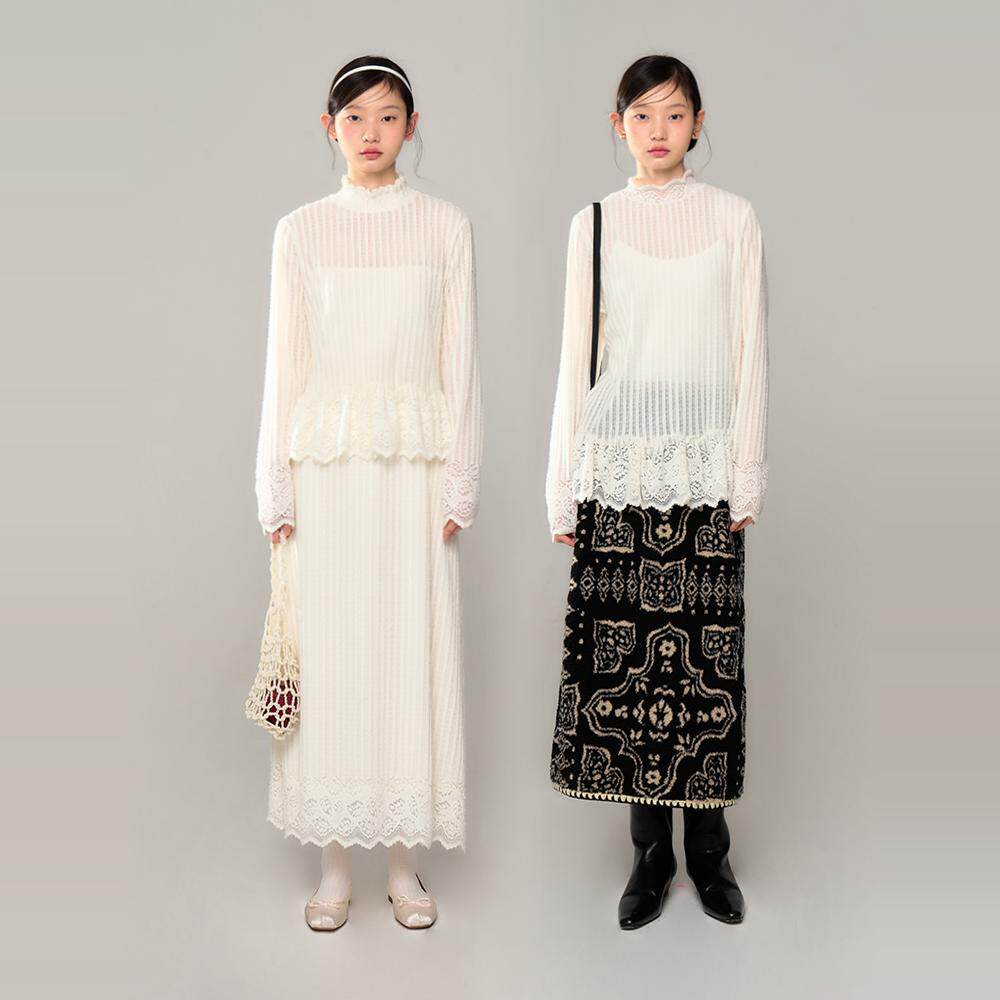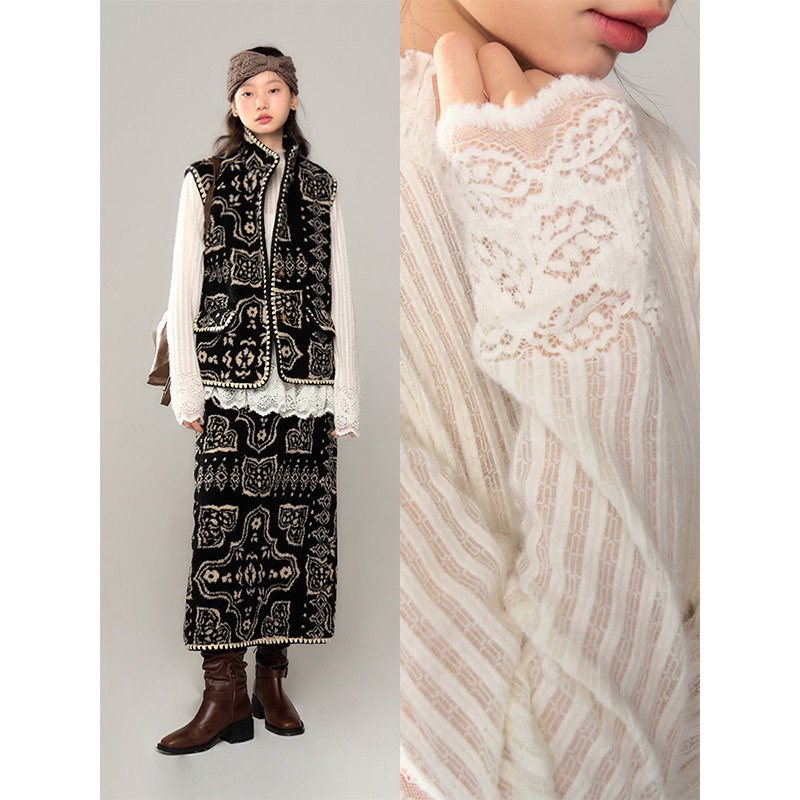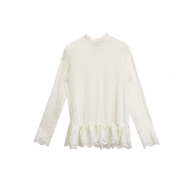 打底衫 有耳uare原创设计 纯白刺绣蕾丝花边长袖 长短款 苔丝茉莉
