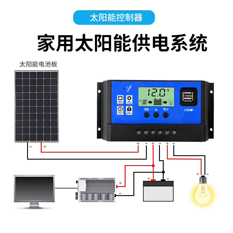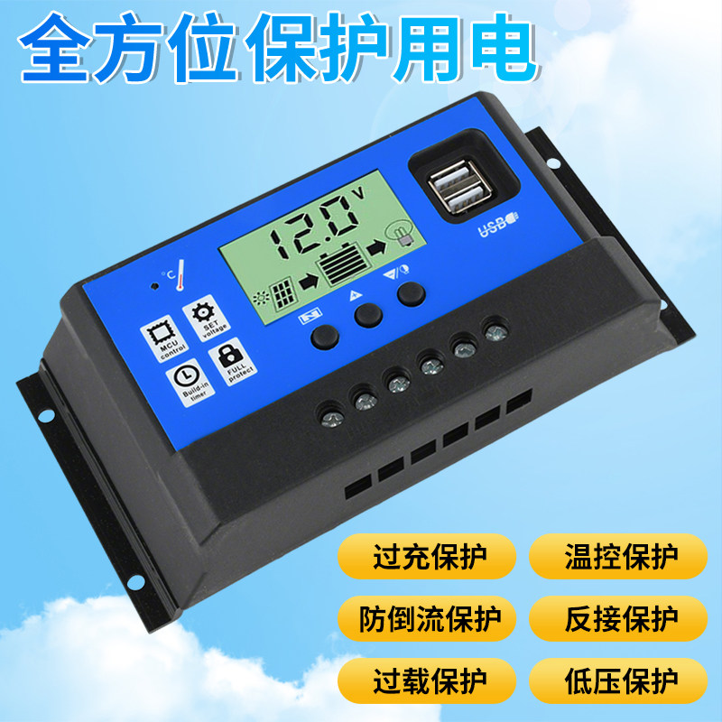 平价太阳能控制器12V24V铅酸锂电电池通用光伏板充电太阳能充电器