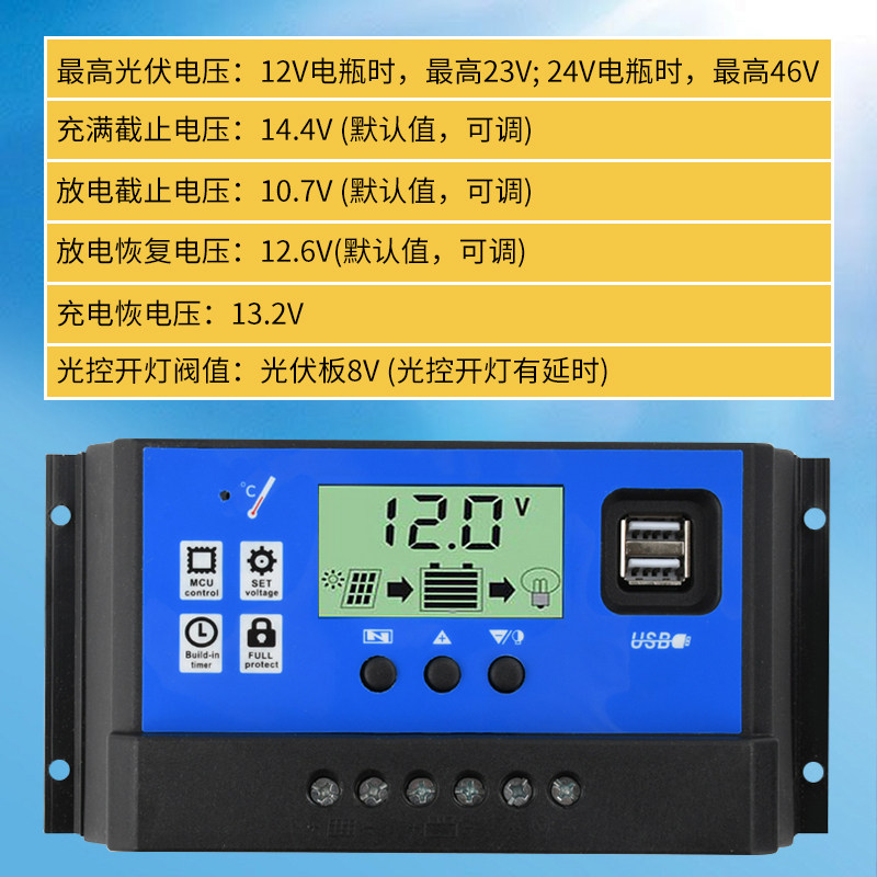 太阳能控制器全自动铅酸电池充电12v24v路灯光伏发电锂电瓶通用型