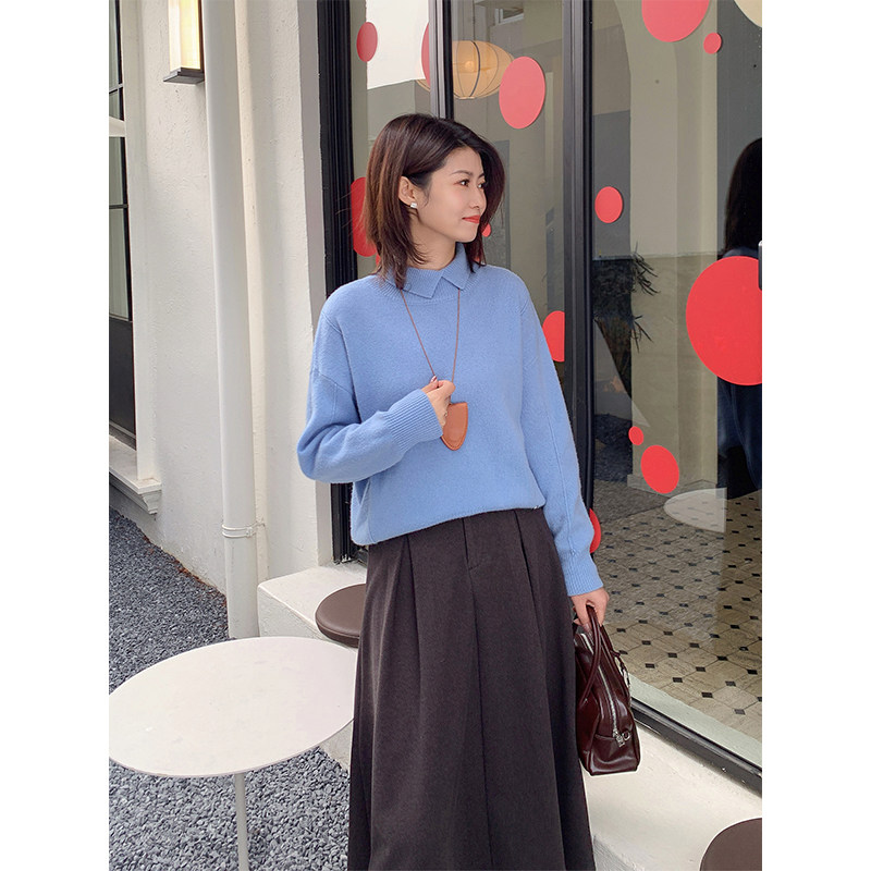 女冬779X 100%羊毛2色翻领毛衣针织衫 紫璐莱暖云天 内搭外穿基础款