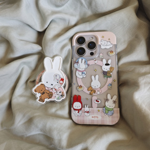 粉色格纹镂空日常兔子卡通双层imd磁吸手机壳适用iphone16promax大孔17防摔苹果15可爱女生14亮面13支架爆款