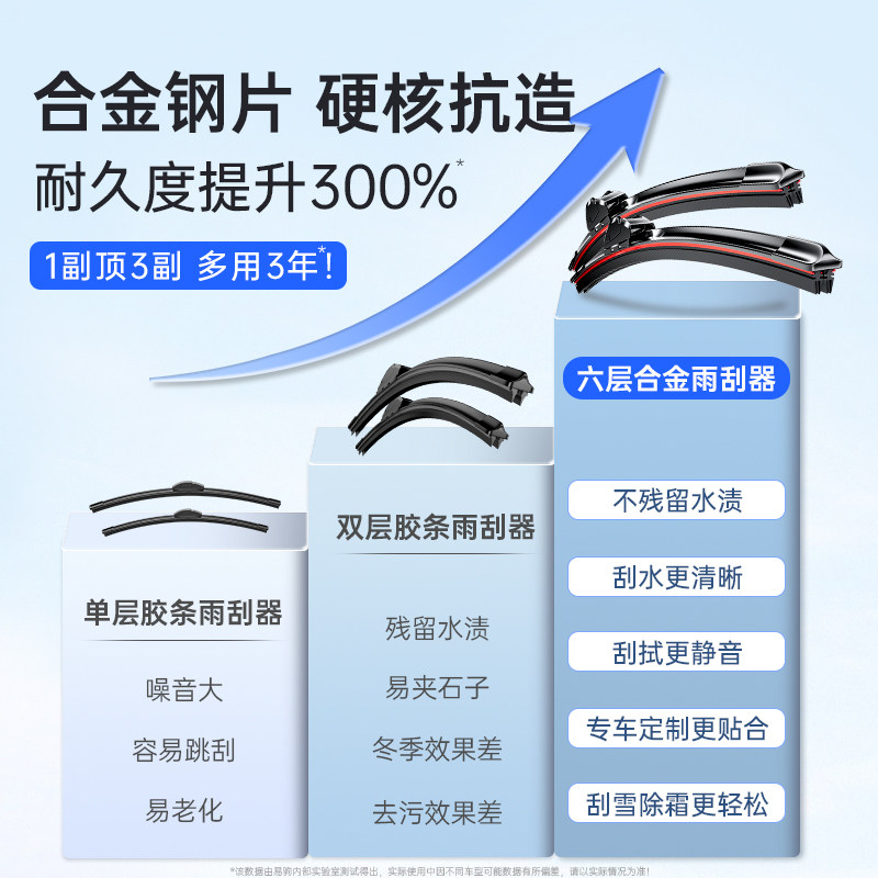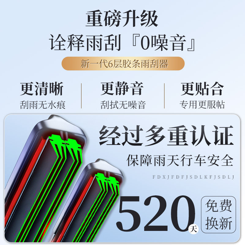 六层胶条雨刮器汽车无骨雨刷静音双胶条前雨刷片原装 合金钢片