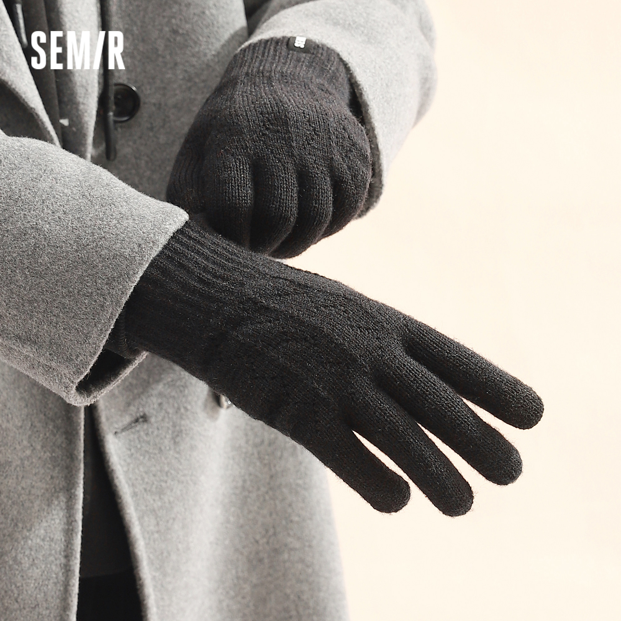 森马毛线手套男士 可触屏针织加绒保暖手套户外骑行防寒学生M 冬季