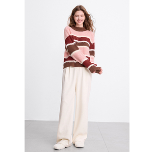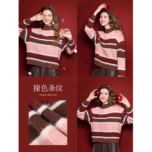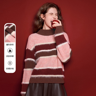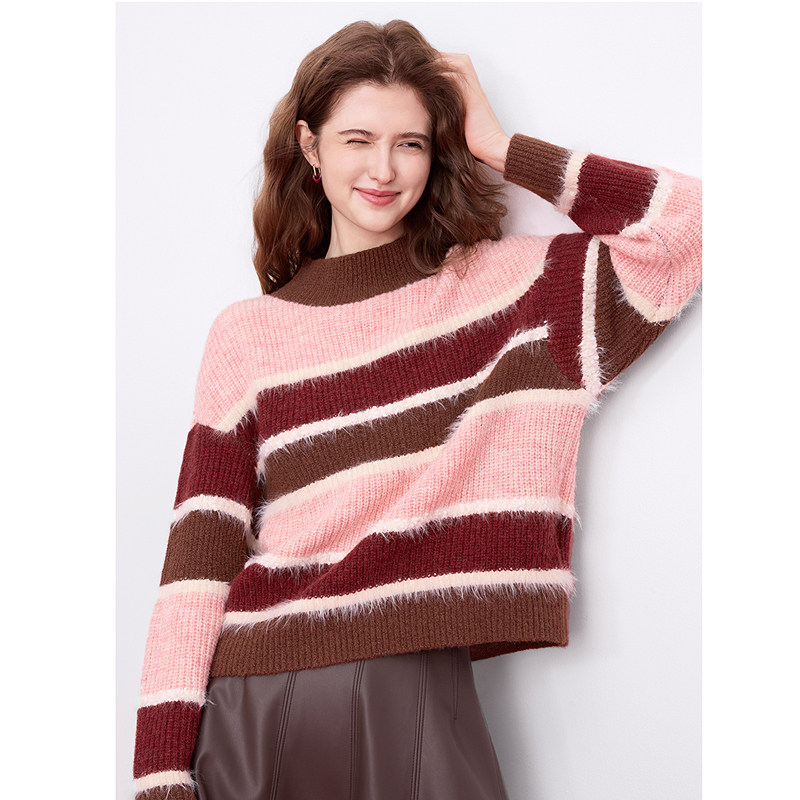 毛衣 女式 betu百图半高领撞色条纹毛衫 保暖套头落肩袖