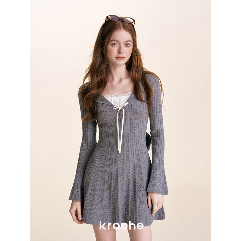 针织假两件拼接加厚针织连衣裙 蕾丝花边 Kroche 浪漫邂逅