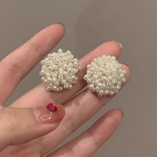 馒头大珍珠耳钉女2025新款 高级感耳环轻奢气质无耳洞耳夹耳饰 爆款