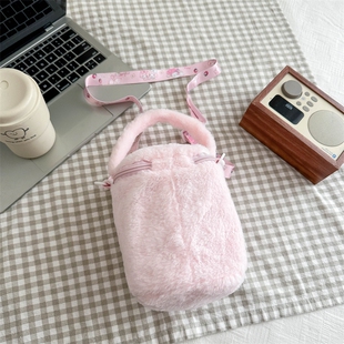 新款 女孩手提包女生收纳小包毛毛水桶包手机包手提零食包 卡通时尚