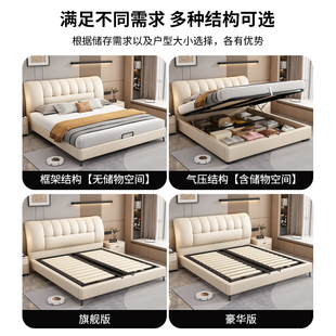 意式 轻奢真皮床北欧双人床实木现代简约高端大气床主卧头层牛皮床