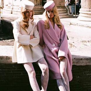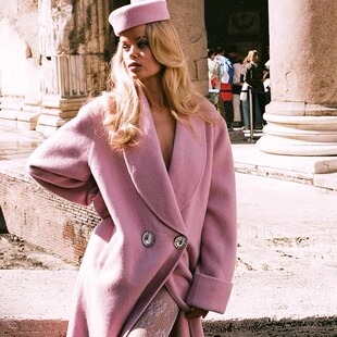 双面呢大衣羊毛兔毛桑蚕丝外套 24AW茧形钻饰长款 Nana Jacqueline