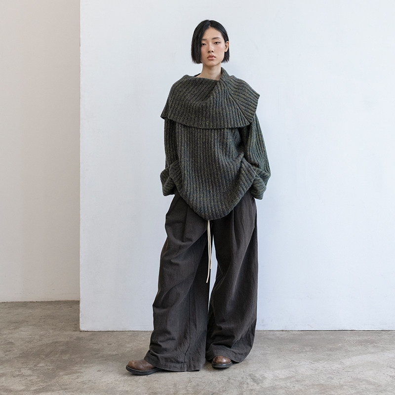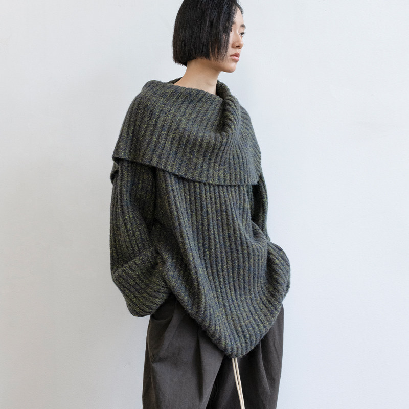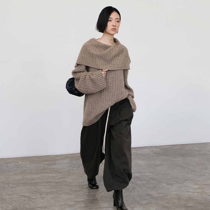 宽松慵懒毛衣B454 秋季 322WORKHOUSE羊毛大翻领针织衫 女士2025新款