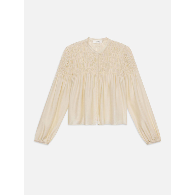 宽松法式 FRAME女士褶皱圆领香槟色衬衫 休闲 秋冬新款