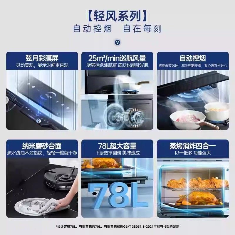 官方正品 美大松夏旗舰集成灶家用蒸烤箱一体消毒大吸力油烟机侧吸