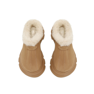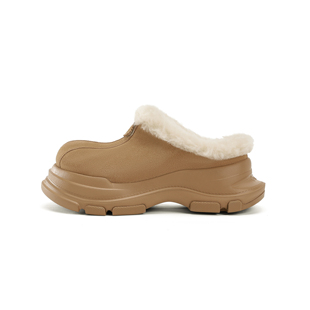 Ouder 厚底增高保暖勃肯雪地靴女一脚蹬防水防滑真皮羊毛大头拖鞋