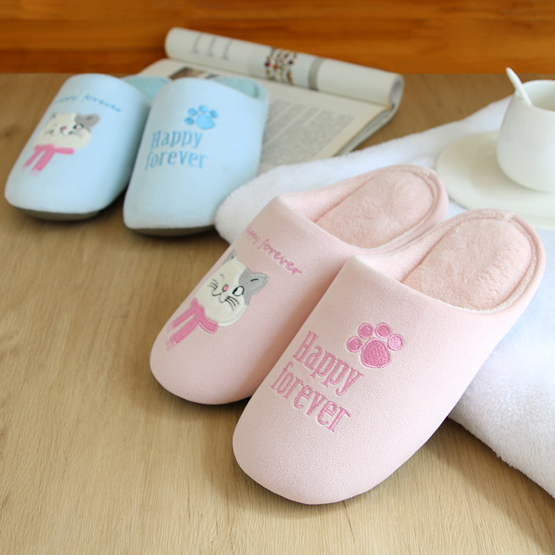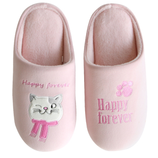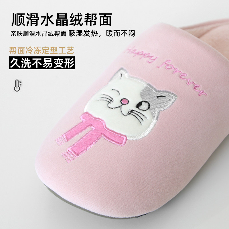 秋冬亲子儿童情侣猫咪防滑保暖毛绒棉拖鞋 室内男女木地板静音软底