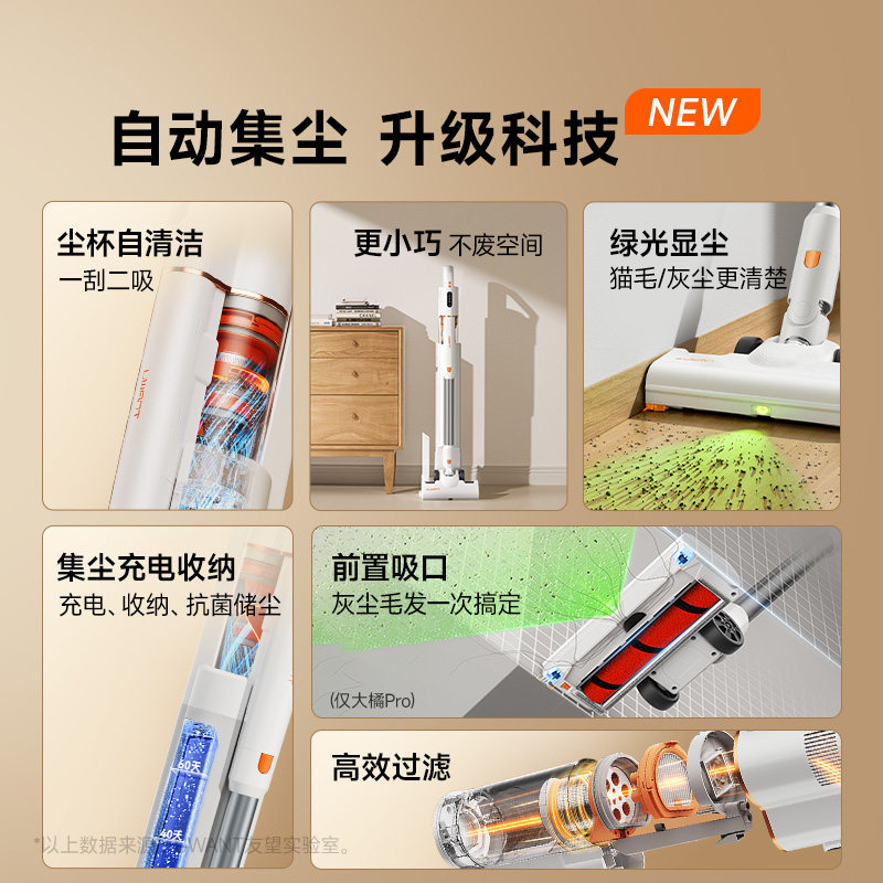UWANT友望大橘自集尘家用大吸力绿光吸尘器猫毛 李佳琦直播间
