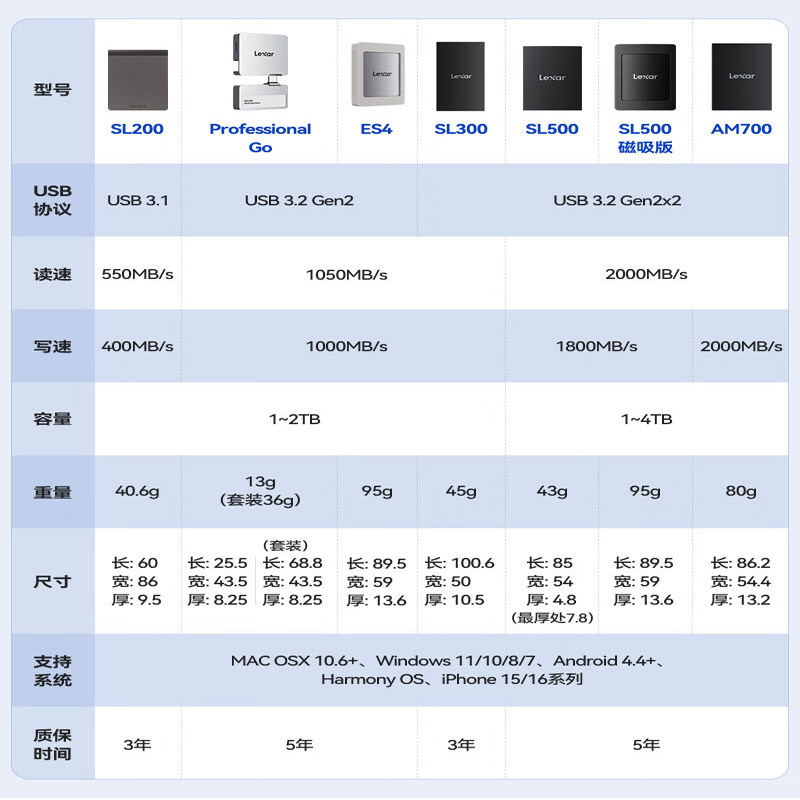 移动固态硬盘ARMOR700手机直连三防保护 雷克沙Lexar 自营