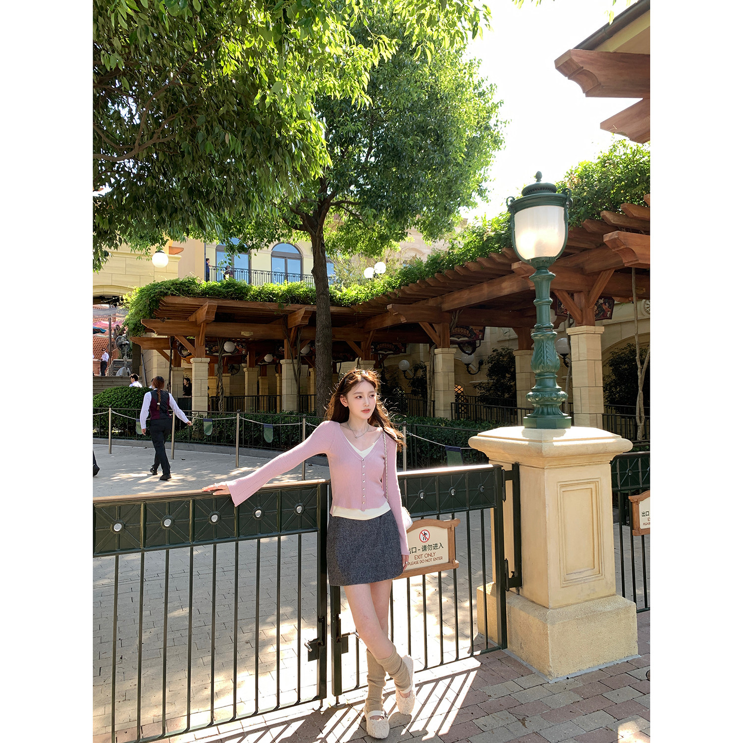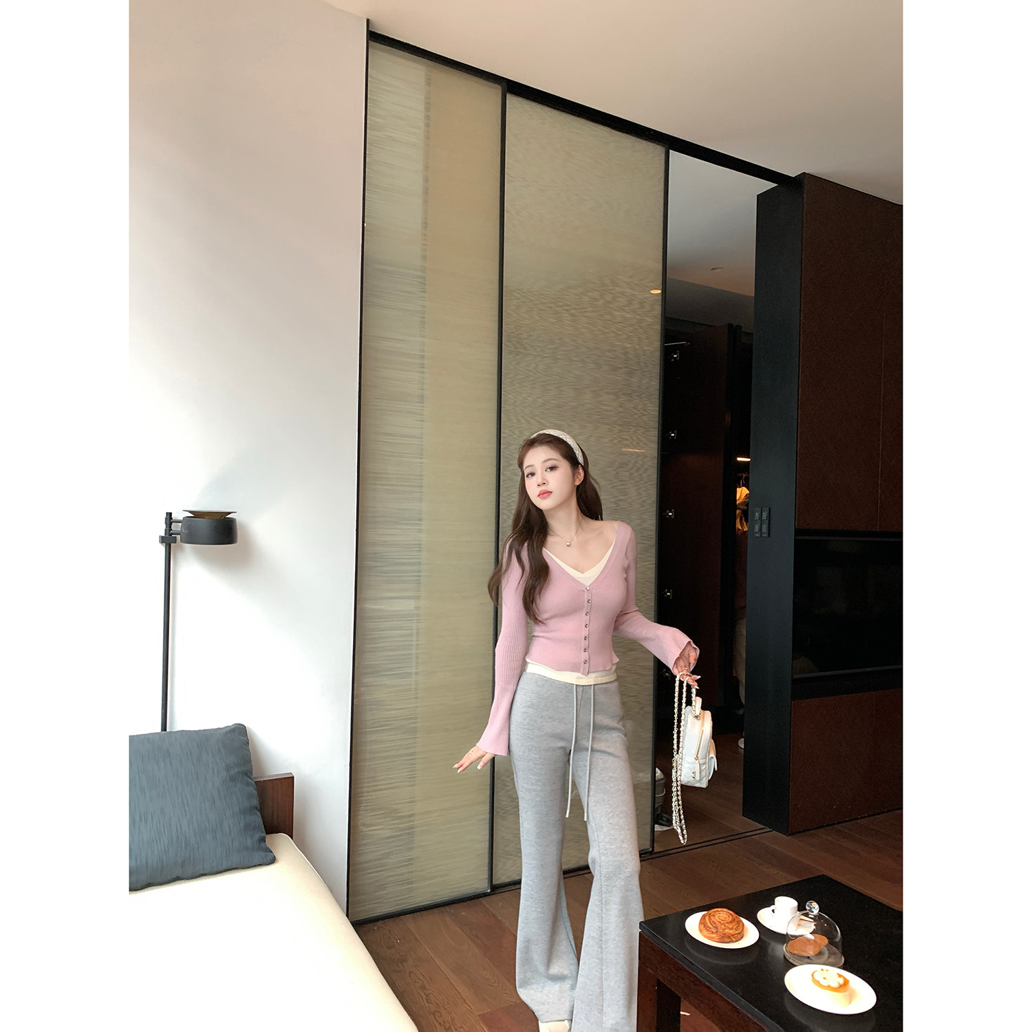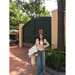气质长袖 AHY 女2024秋冬新款 针织衫 百搭上衣 v领拼色假两件修身