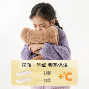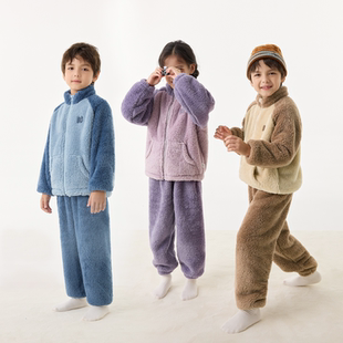 尼多熊新款 加绒加厚珊瑚绒外穿 秋冬儿童家居服男女童宝宝睡衣套装