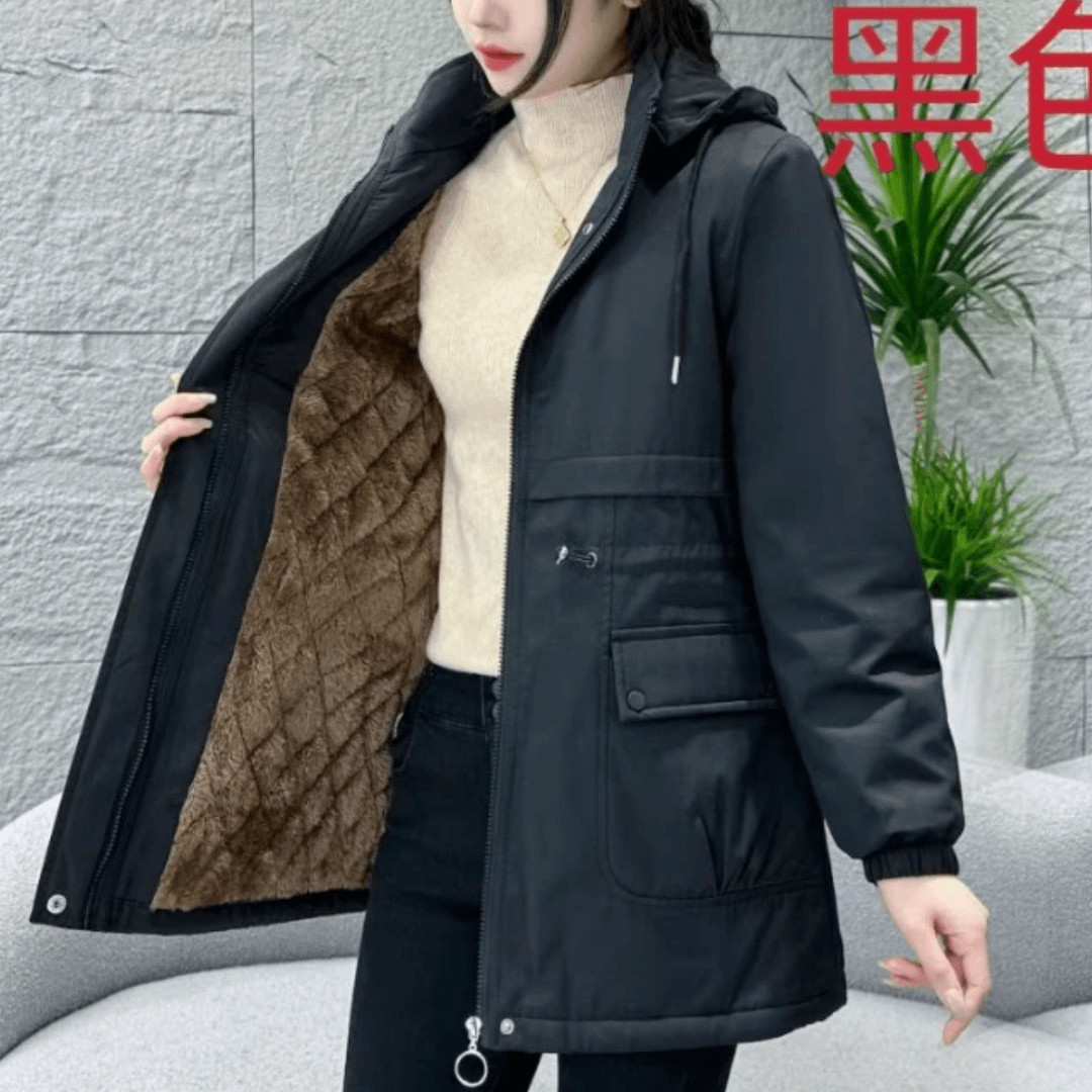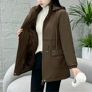新款 棉服外套女2025冬季 加厚保暖连帽棉衣 收腰显瘦长款 胖mm特大码