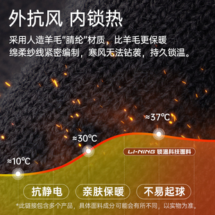 李宁帽子男冬季 针织帽运动加绒加厚防风防寒保暖跑步登山毛线帽女