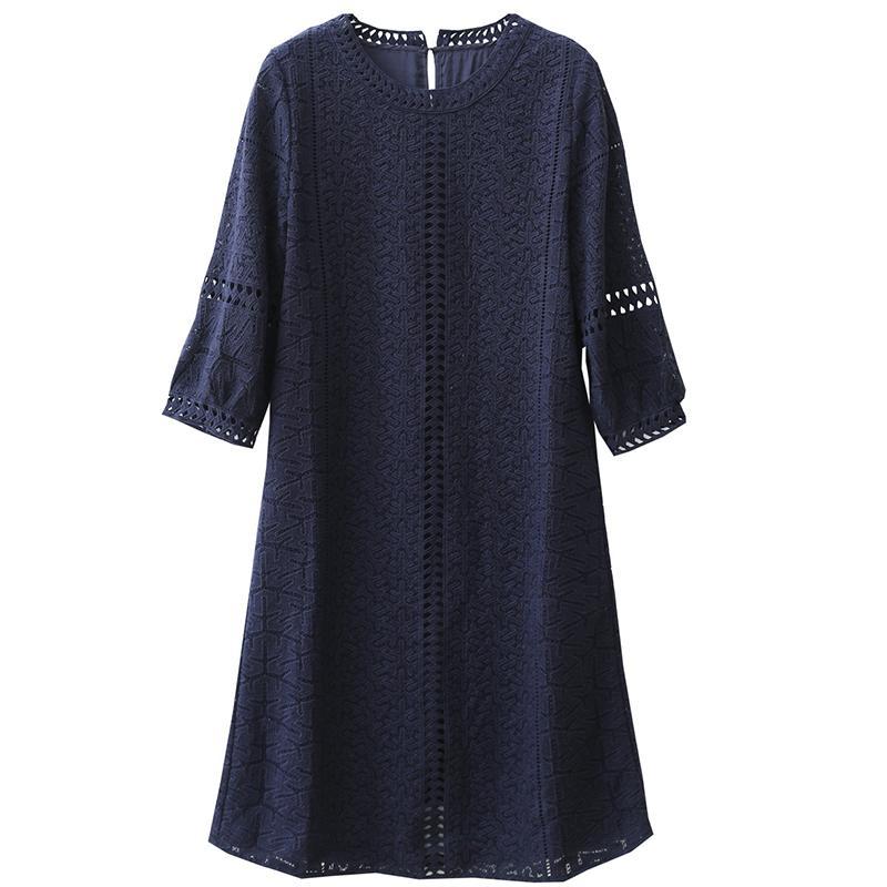 2020新款 直筒裙赫本风裙子 蕾丝茵姿提连衣裙宽松气质镂K空七分袖