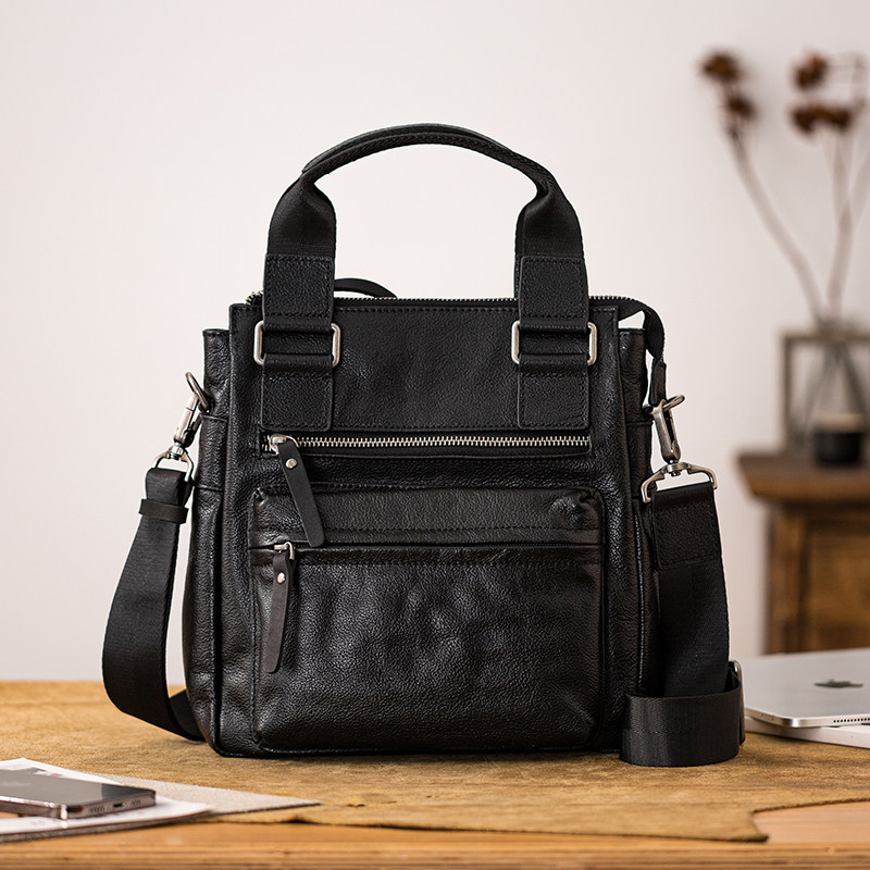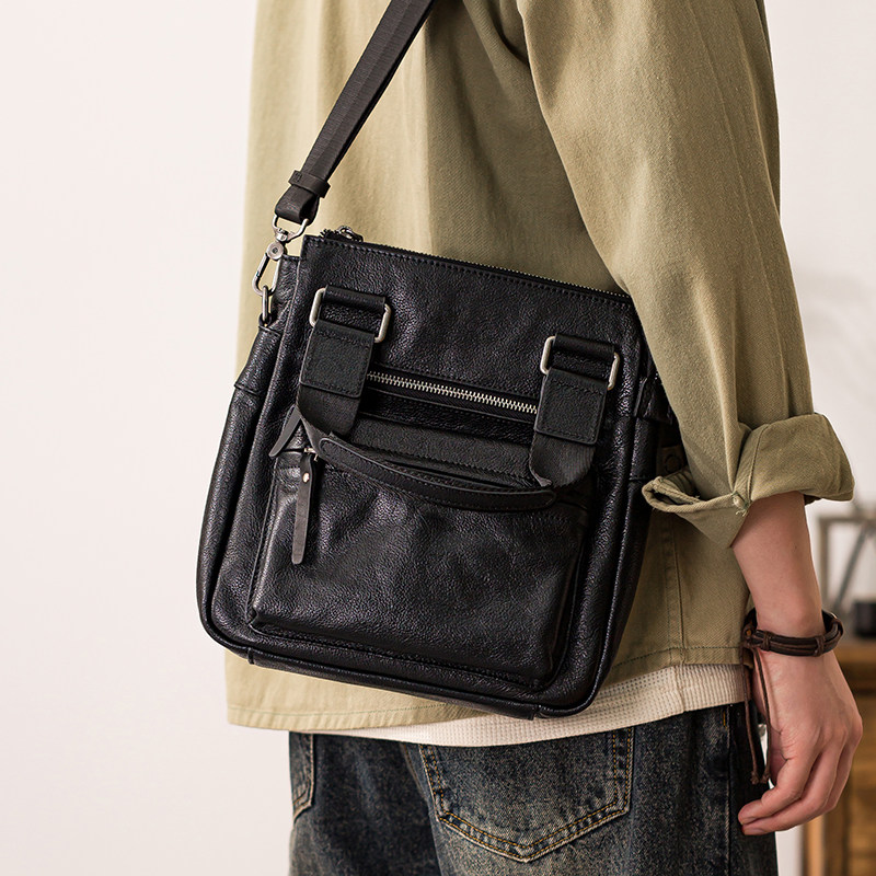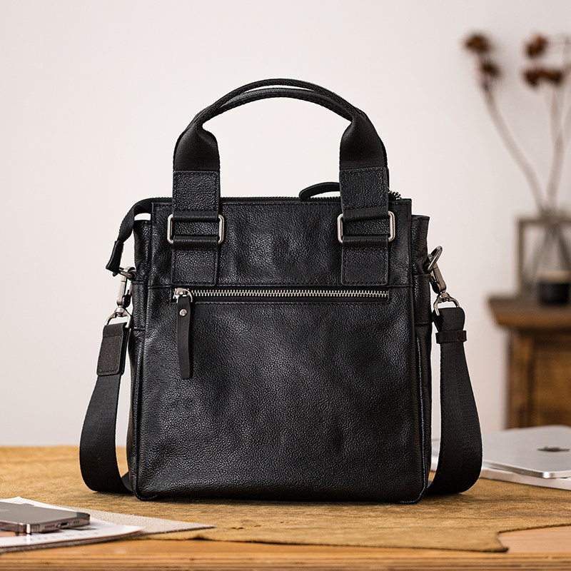 后步商务通勤百搭斜挎包男士 真皮手提植鞣牛皮休闲背包真皮单肩包