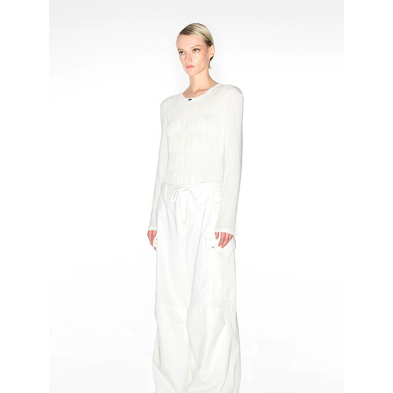 IMMI24AW秋冬超薄强粘针织圆领抽褶上衣MWDFWJTP0894X 新品