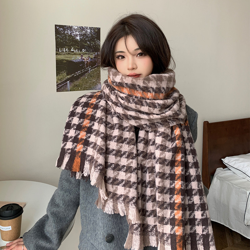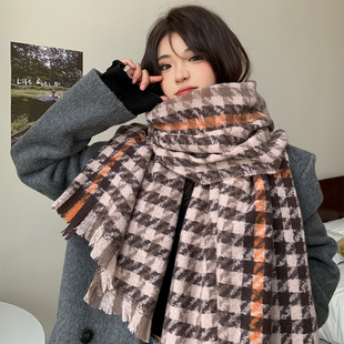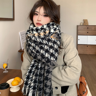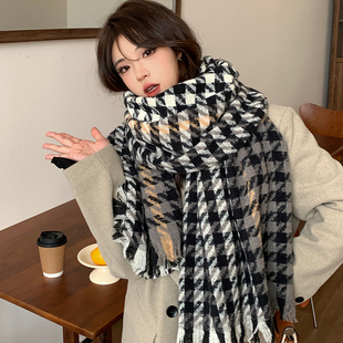 黑白格子围巾女秋冬季 加厚保暖外搭披肩韩系百搭针织围脖 2024新款