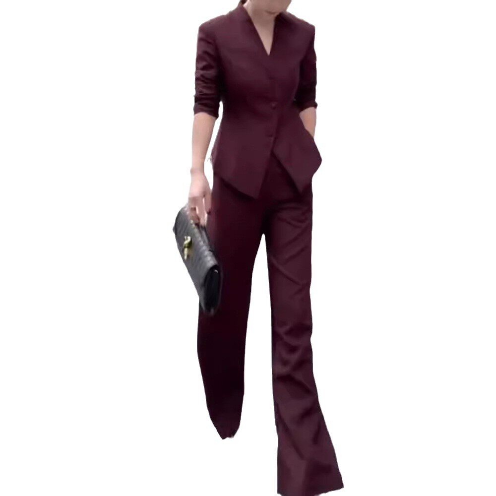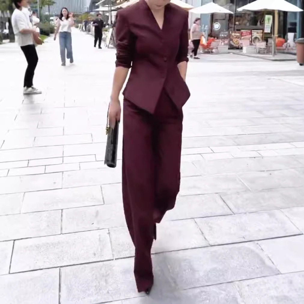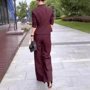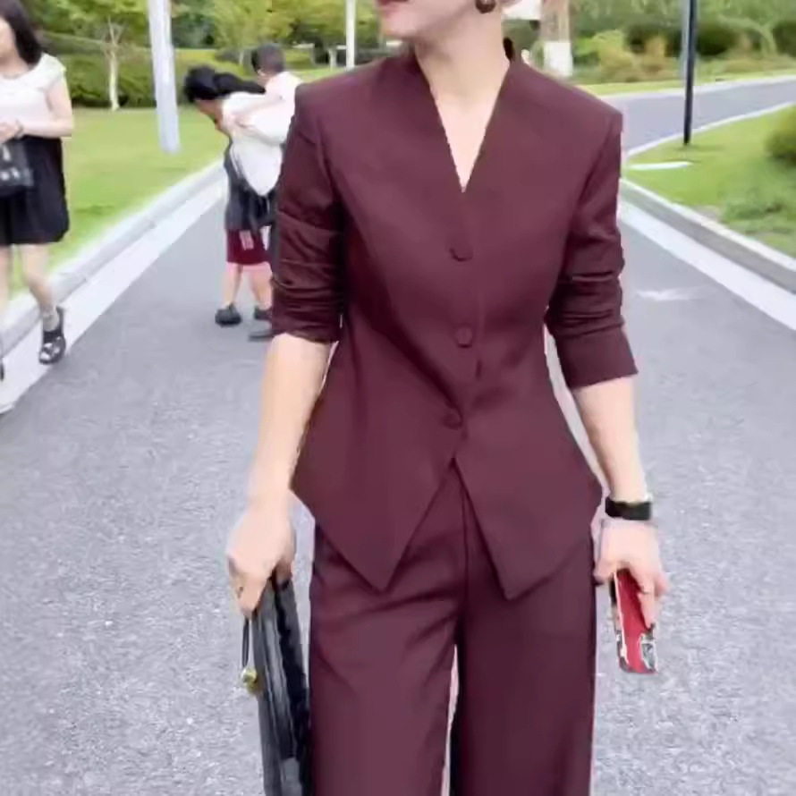 韩版 干练套装 显瘦2025新款 西服外套高腰长裤 职业 V领修身 宽松时尚