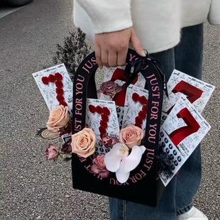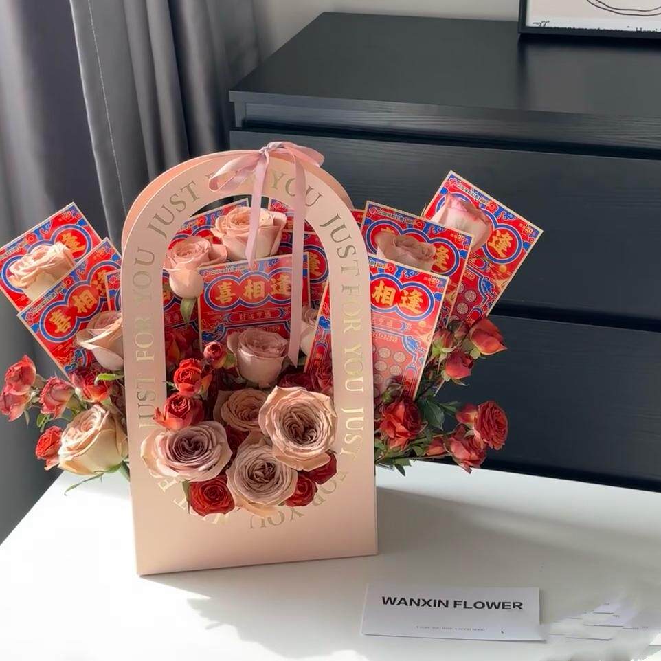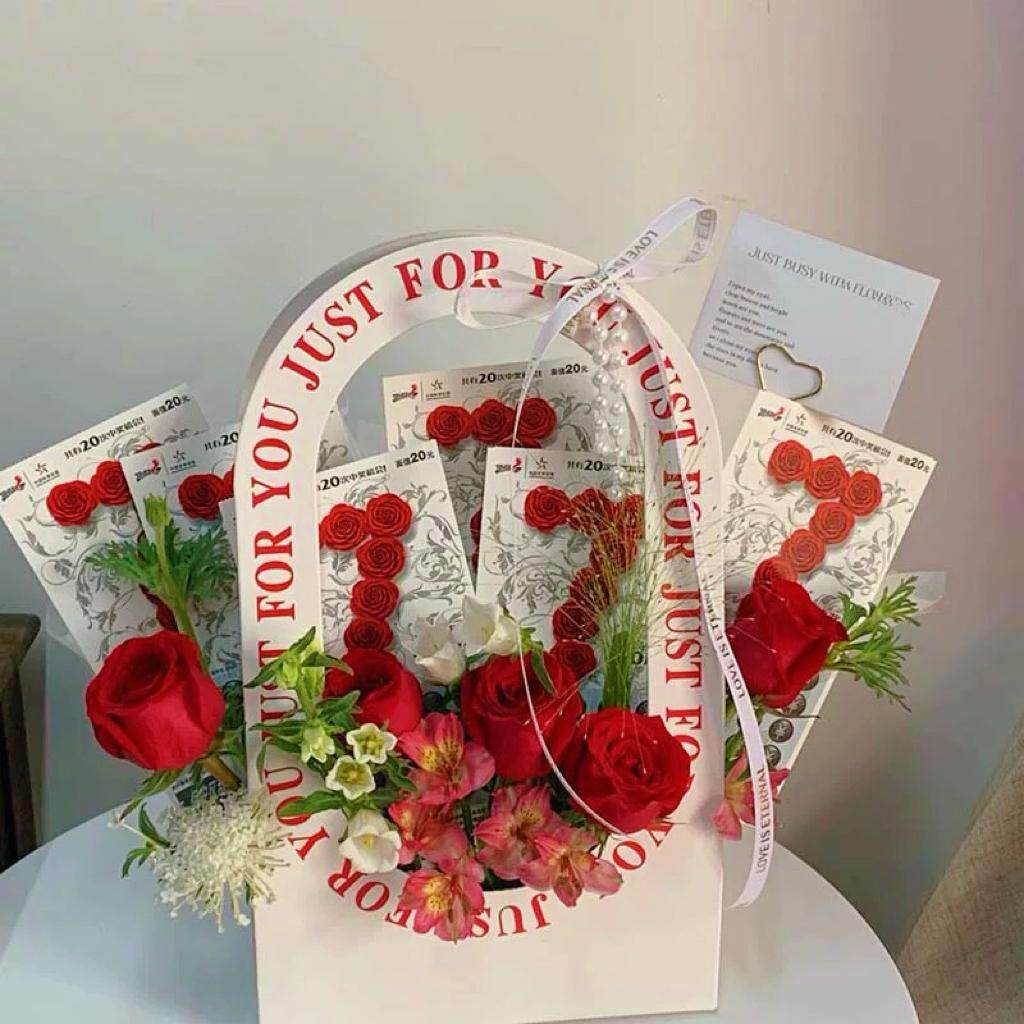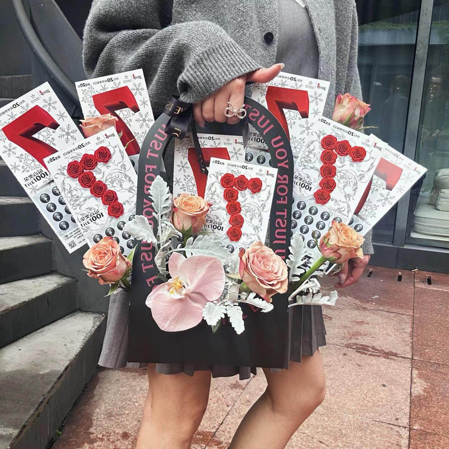 彩票花diy材料包装 鲜花袋子手提花篮牛皮纸小提篮有钱花插花盒子