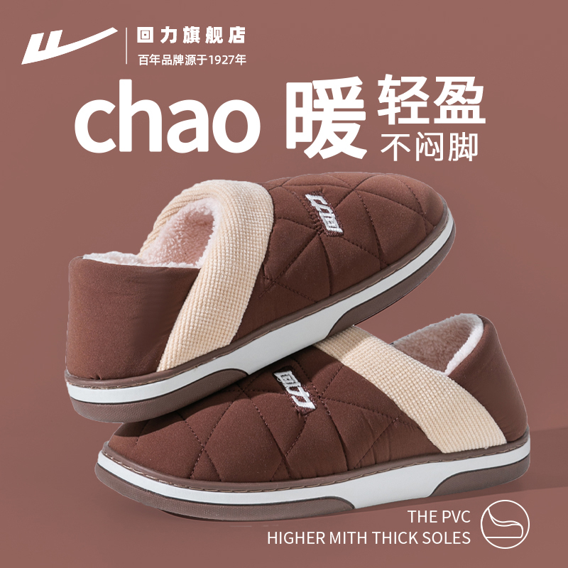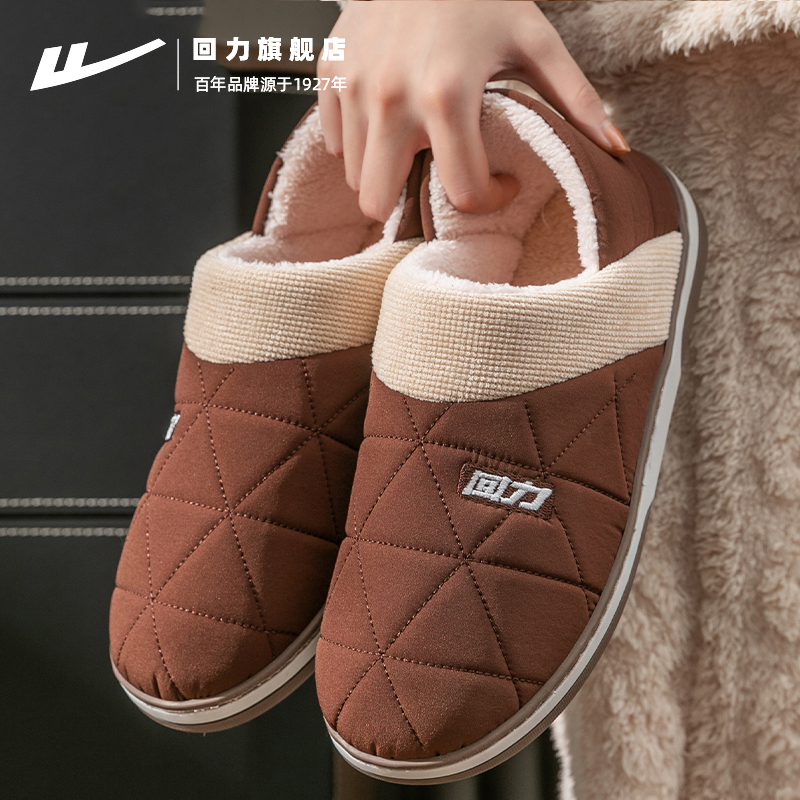 女踩屎感防滑加绒保暖拖鞋 人本冬季 厚底可外穿拖鞋 包头棉拖鞋 男士