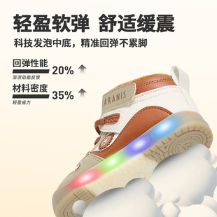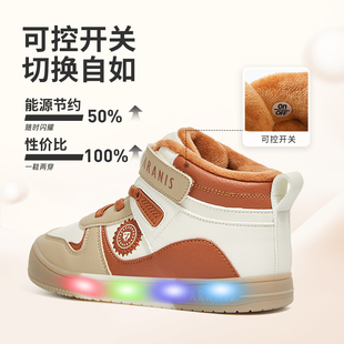 防滑软底休闲板鞋 加绒保暖发光休闲鞋 男童冬季 泰兰尼斯儿童闪灯鞋