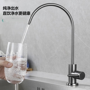 枪灰色净水器通用厨房水龙头2分304不锈钢单冷龙头铜芯螺杆加长款