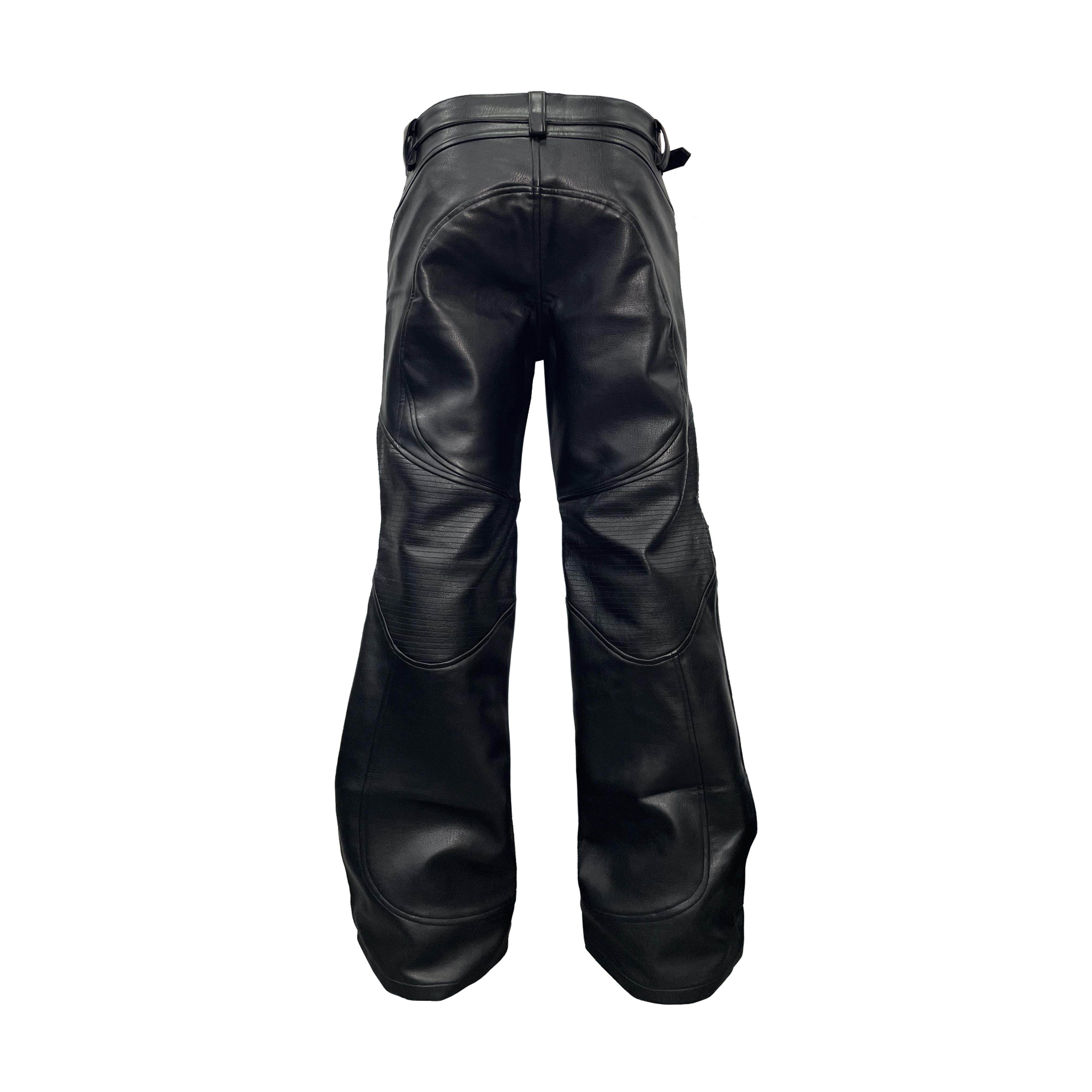 biker机车立体膝盖腰部调节黑色微喇皮裤 3MAN0N PCCVISION