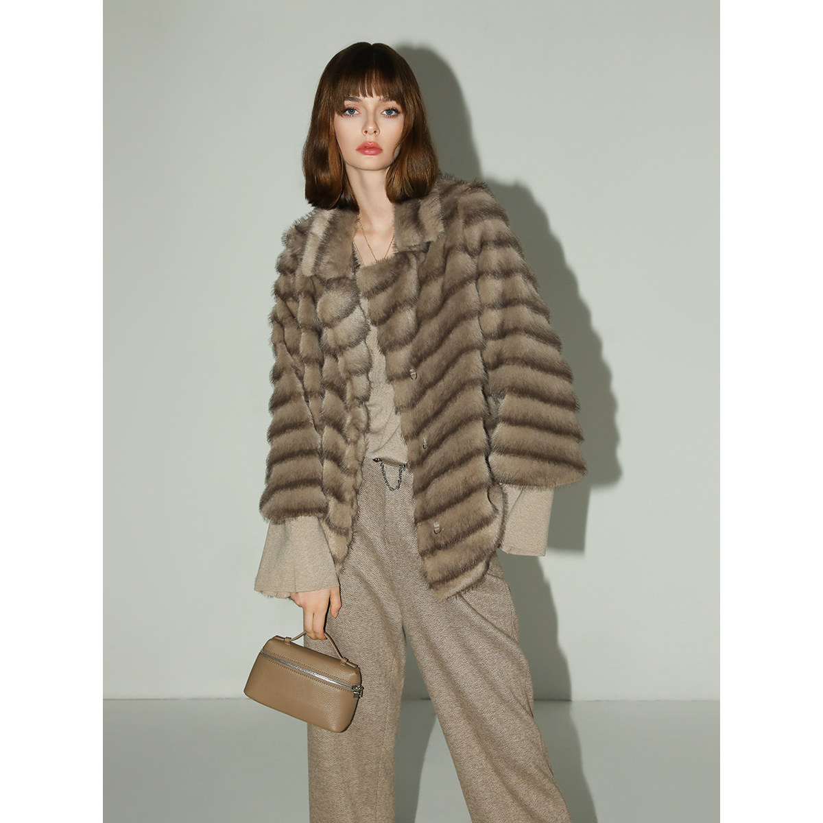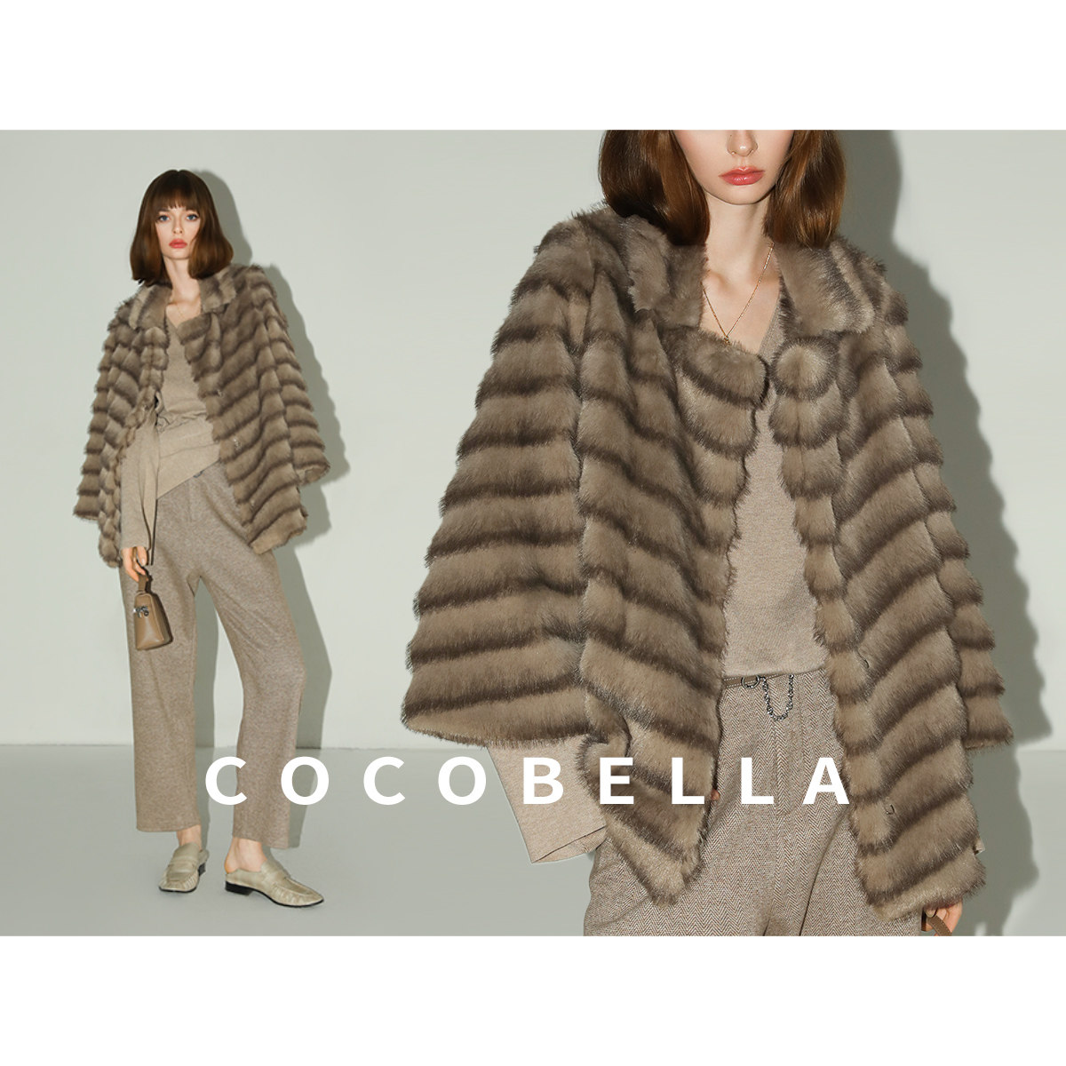COCOBELLA仿天鹅绒水貂原色环保皮草外套冬御寒毛绒大衣FU3095
