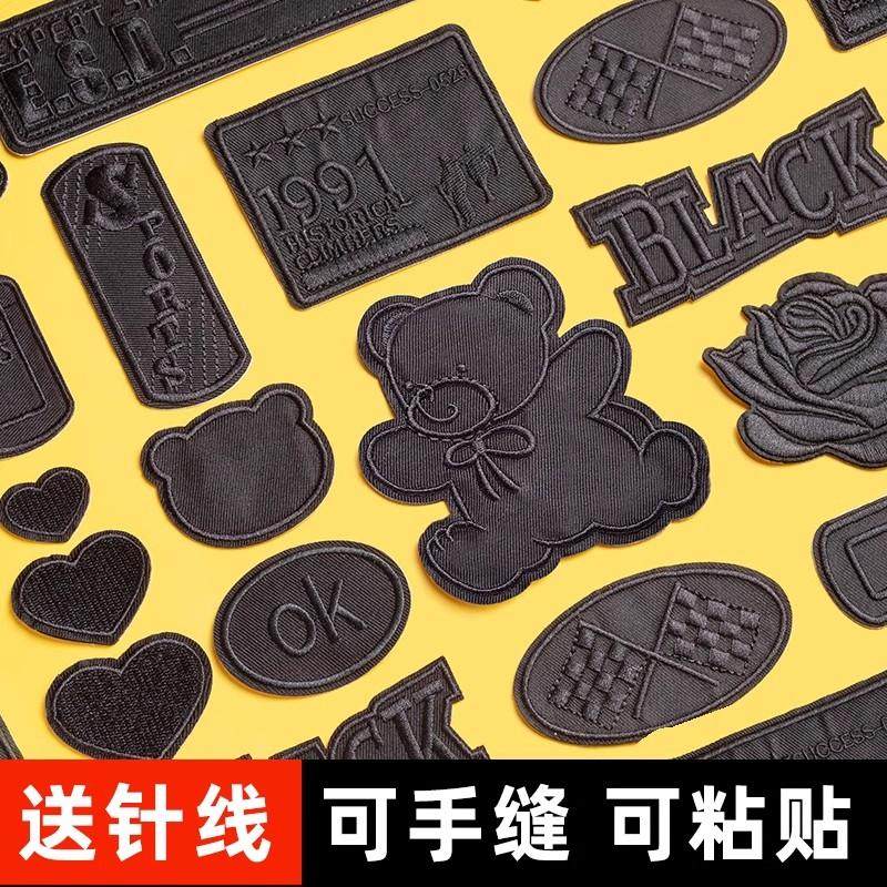 自粘补丁贴免缝 t恤男修补破洞无痕 黑色刺绣徽章布贴羽绒服衣服裤