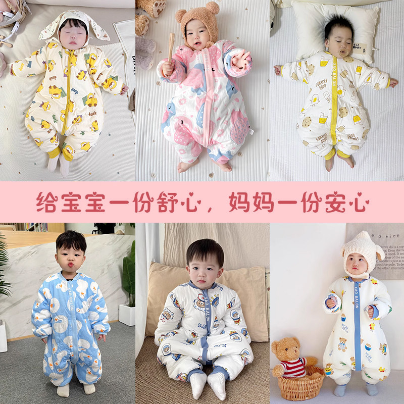 婴儿睡袋秋冬夹棉宝宝加厚防踢被新生儿恒温分腿睡衣男女儿童睡袋