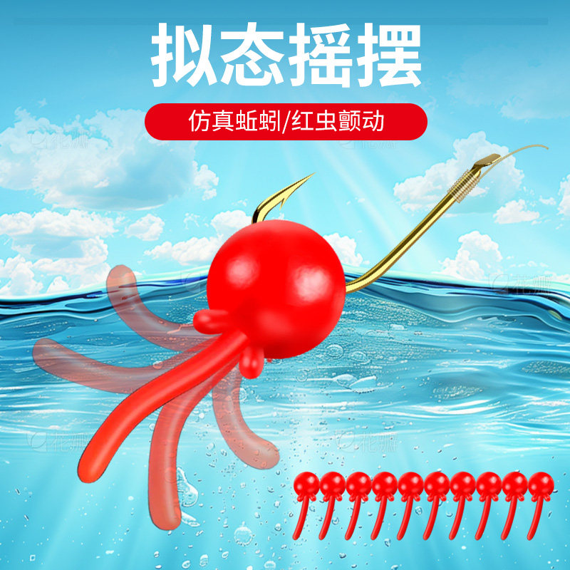 动态软珠逗钓带尾巴软珠钓鱼浮珠反底钓路亚拖钓鲫鱼鲤鱼仿生假饵