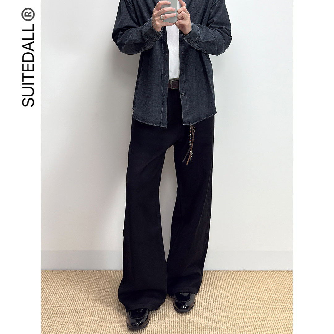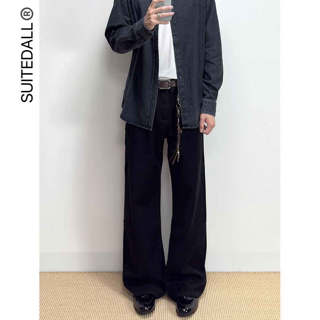 黑牛宽松直筒微喇叭简约百搭显瘦水洗牛仔裤 净版 2021M SUITEDALL