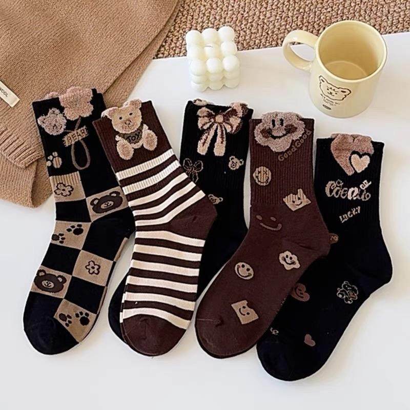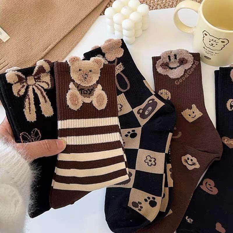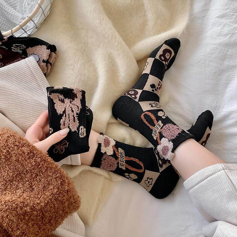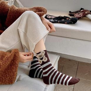中筒毛绒袜外穿百搭长袜子日系 ins潮韩版 春秋配鲨鱼裤 小熊袜