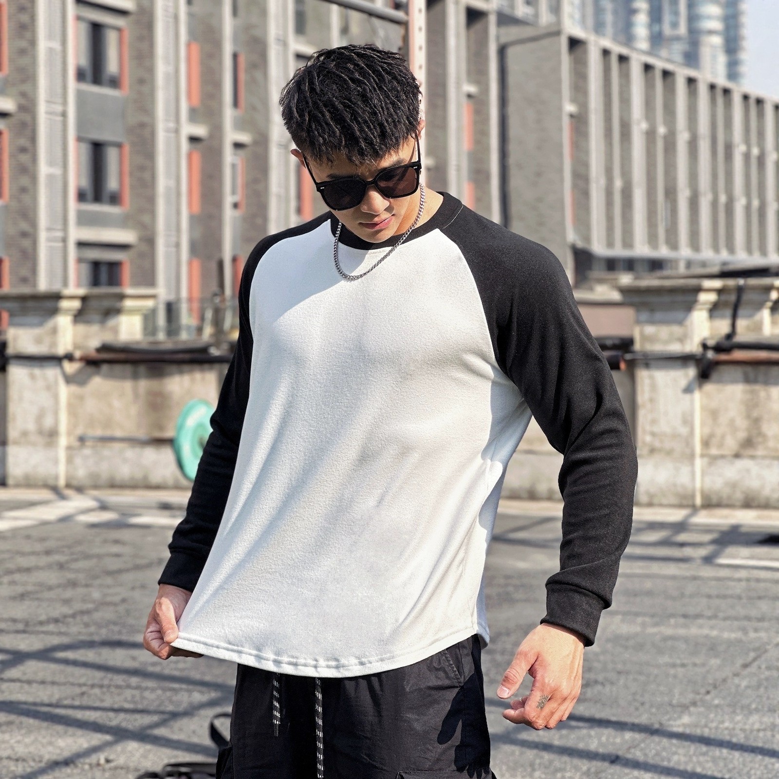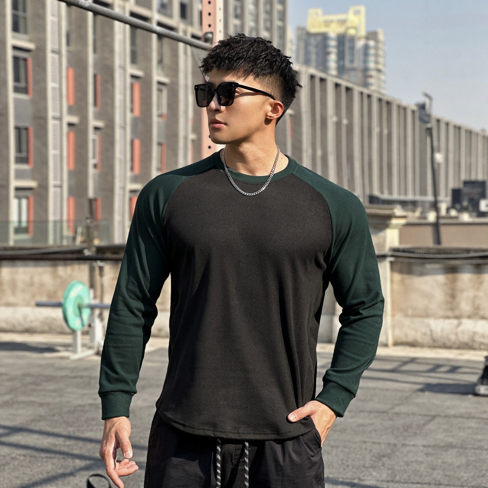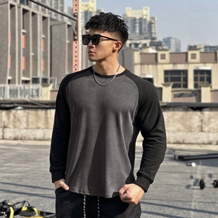 加绒保暖拼色显壮肌肉男跑步打底衫 Light Weight春秋健身德绒长袖