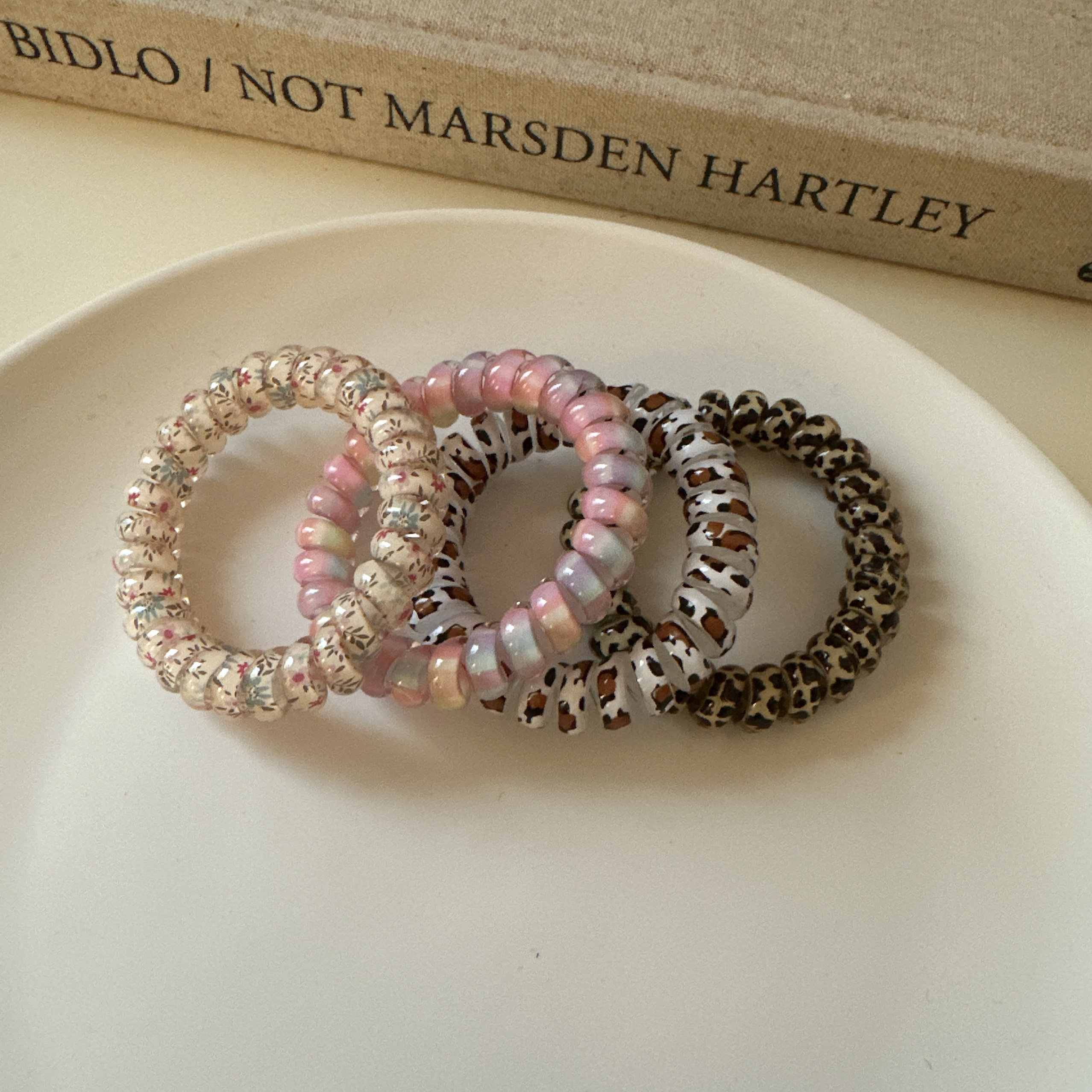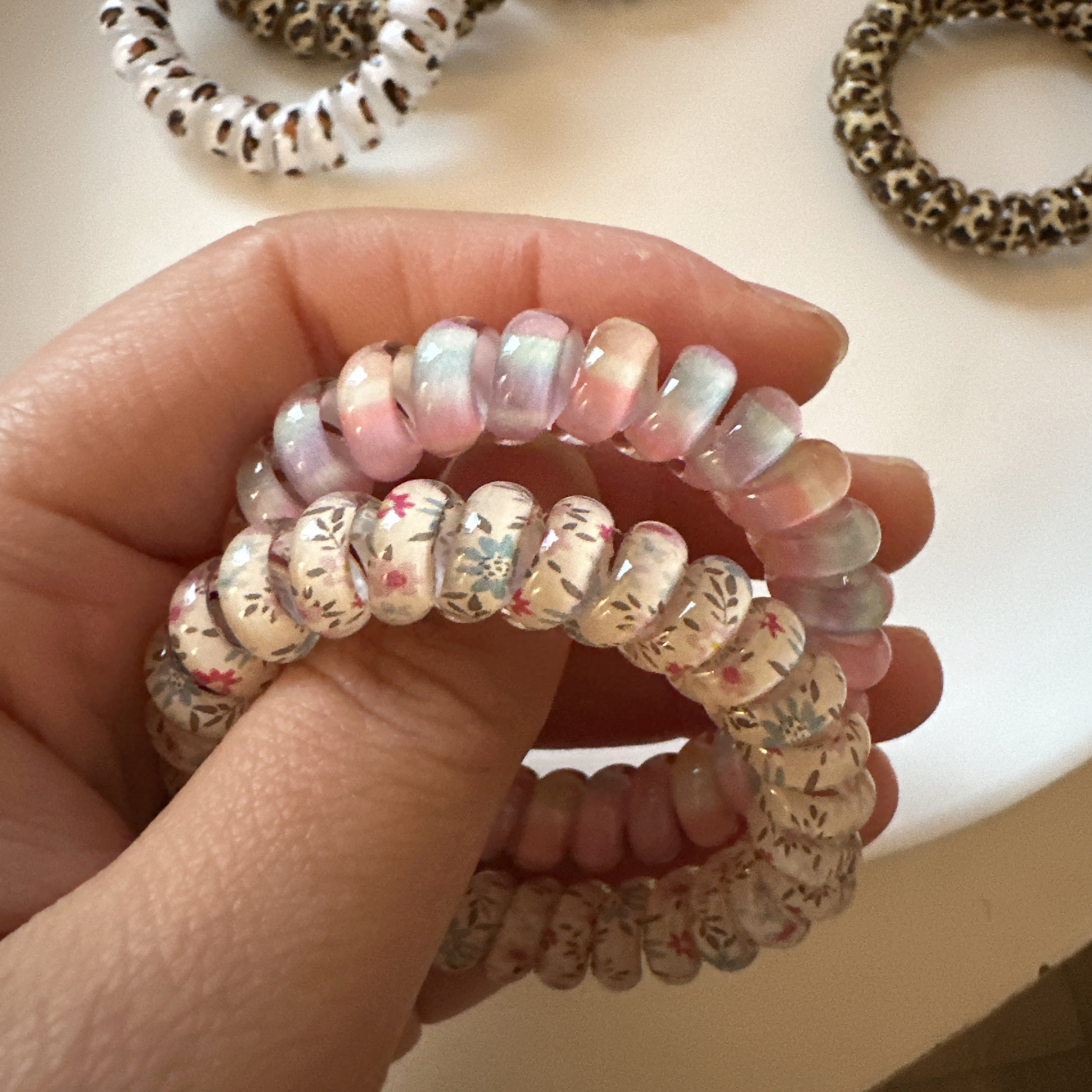 可爱豹纹小花高回弹力粗款 电话线发圈耐用不伤发头绳无痕发绳皮筋