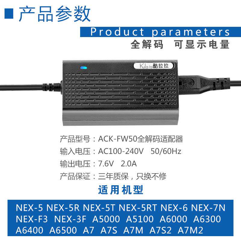 Kulala索尼相机外接电源A7M2 FW50假电池A6500 R2微单适配器PW20