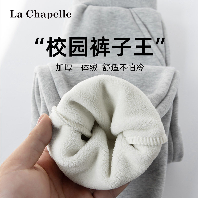 儿童加厚运动裤 拉夏贝尔女童薄绒裤 加绒卫裤 男童冬季 黑 子一体绒裤
