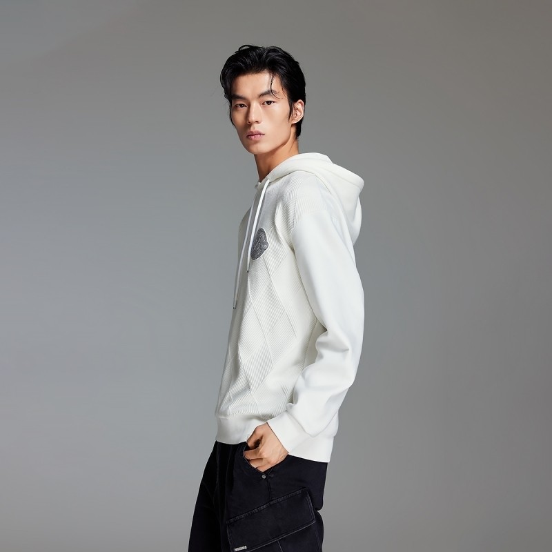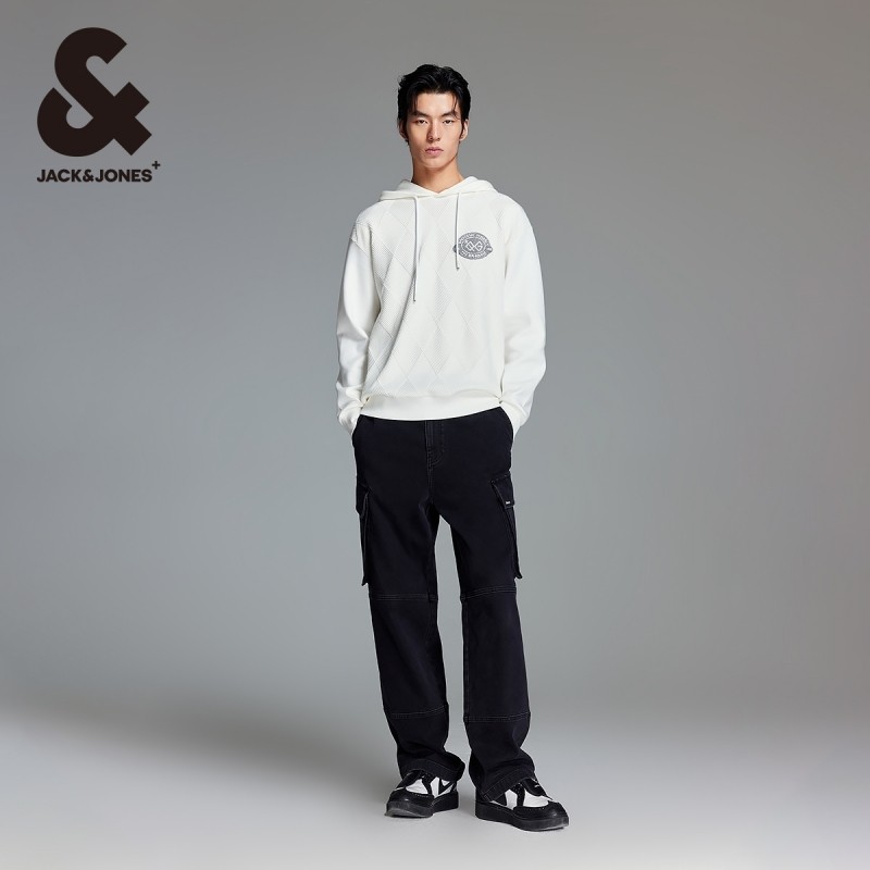 菱格提花刺绣图案日常休闲连帽毛衣男装 针织衫 新款 杰克琼斯冬季