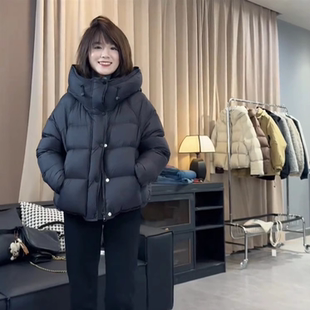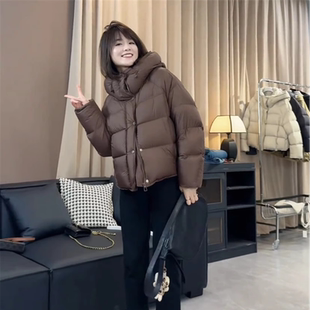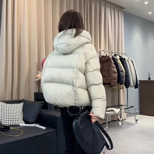 今年流行加厚泡芙面包服潮 爆款 正品 高级感连帽白鸭绒羽绒服女冬季