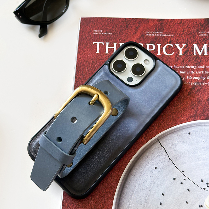 墨兰渐变植糅牛皮铜精孔iphone16Promax经典 14系列原创设计保护套手机保护壳 铜扣腕带手机壳苹果15